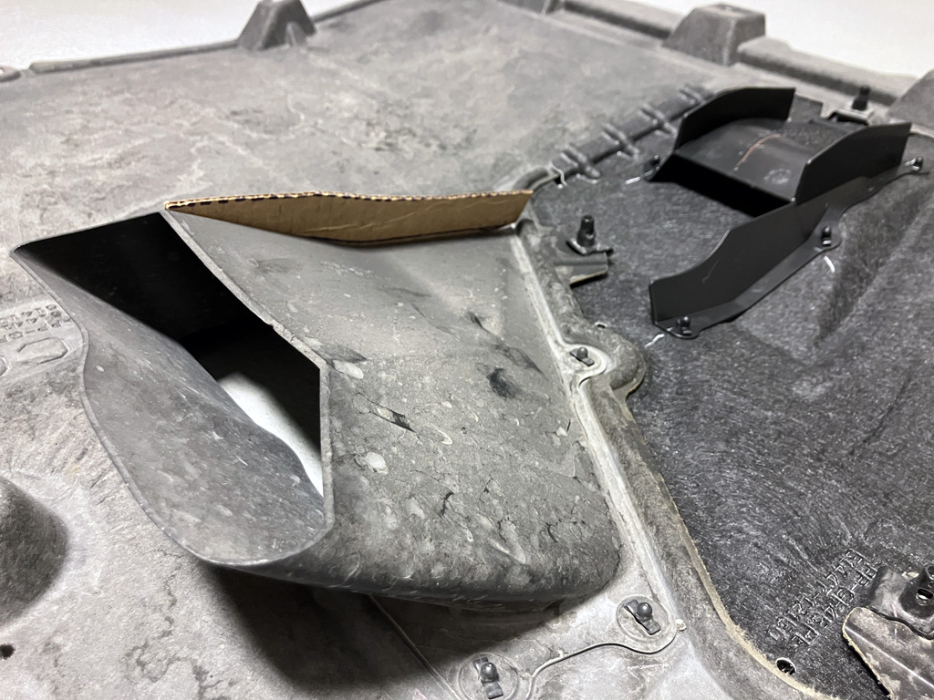 Toyota released a revised undertray beneath the engine for 2025 models. Instead of purchasing the entire undertray for ~$250, I opted for the $40 revised panel insert only. This panel insert has a NACA duct that feeds cold air towards the transfer case. With a little bit of ingenuity, I added