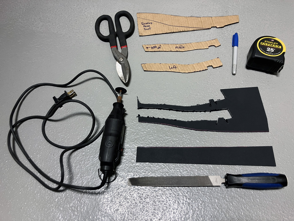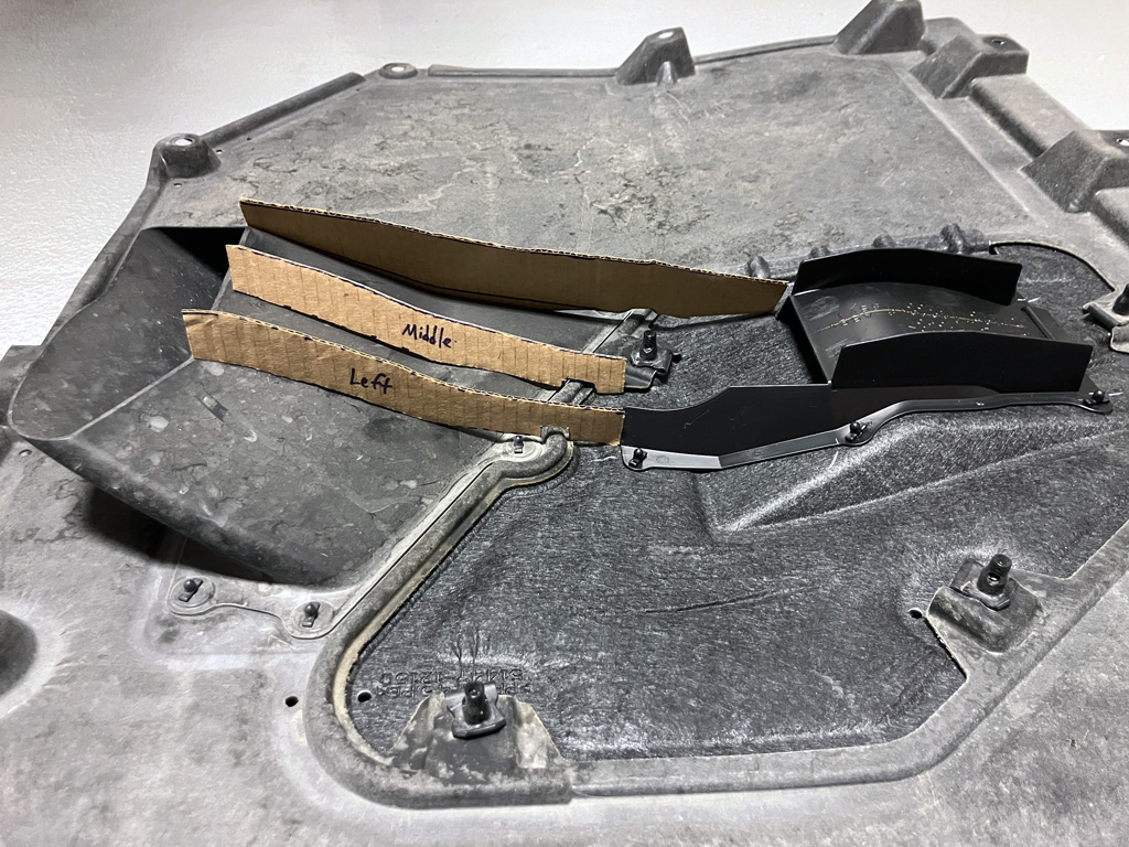 2. Make cardboard templates for strakes to guide air from panel insert NACA duct to OE transfer case fins.
