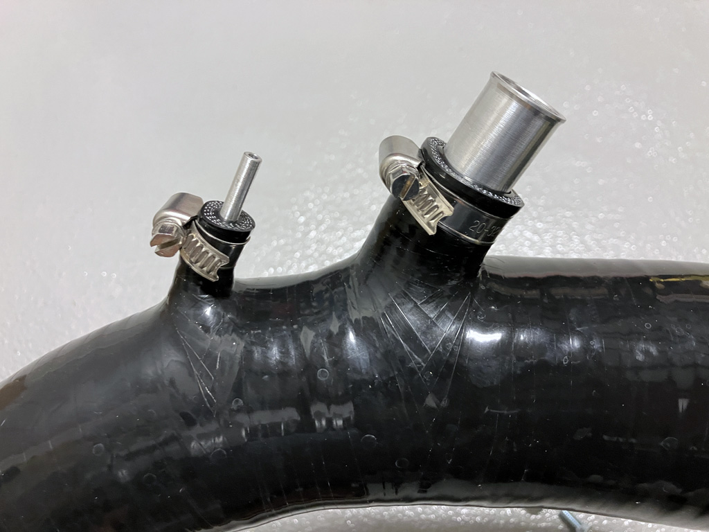In steps do88 performance with their turbo inlet hose. This silicone hose replaces the OE turbo inlet elbow and plastic piping along the backside of the engine under the wiper cowl. In my case, I removed a rubber coupling on my back Eventuri pipe and joined it to the do88 turbo inlet hose with a hose clamp.