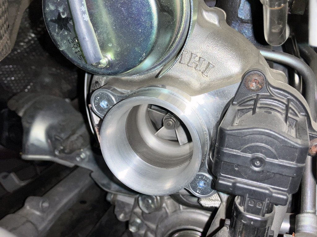 1. Install do88 turbo inlet metal adapter on OE turbo compressor housing.