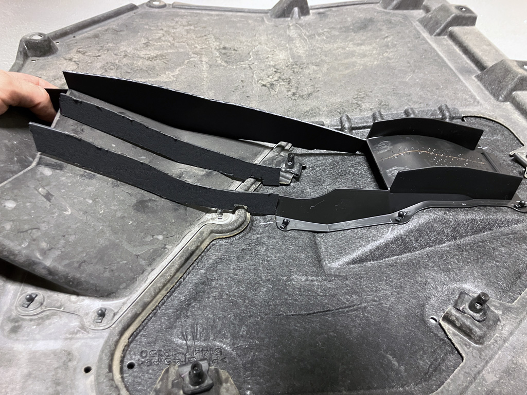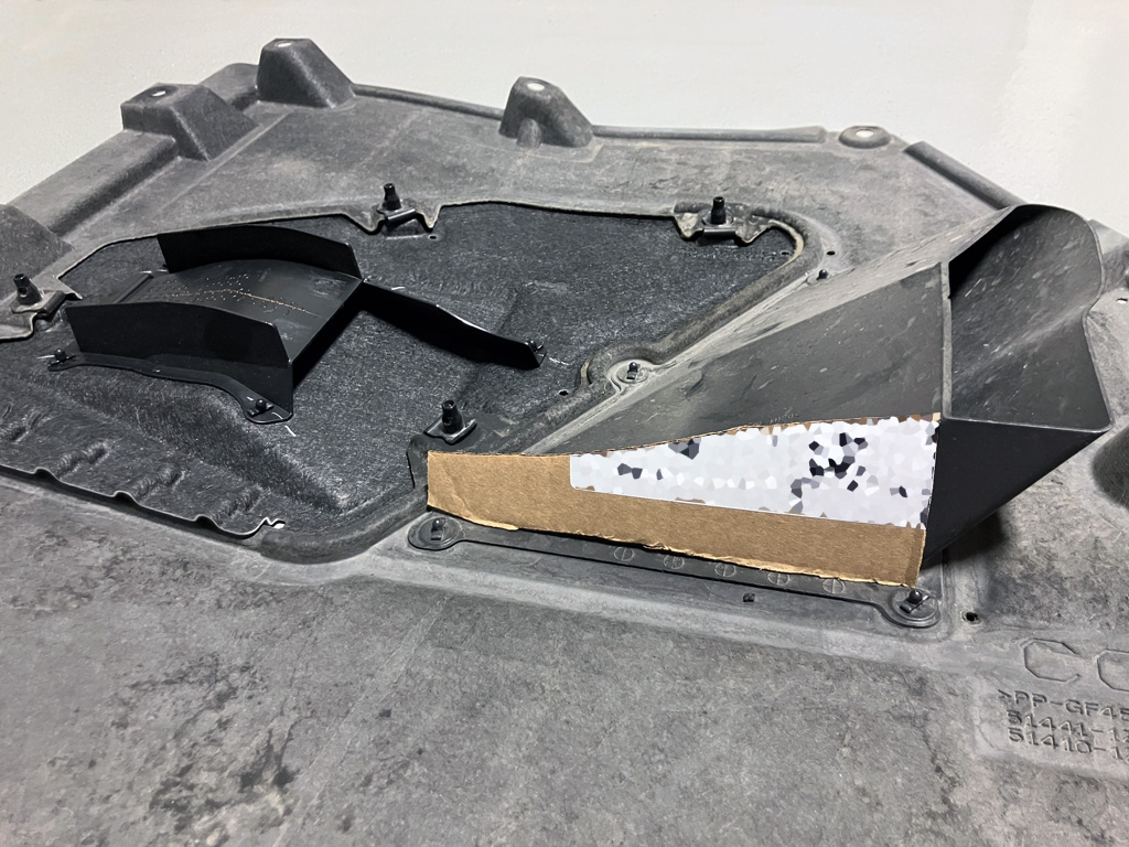 Toyota released a revised undertray beneath the engine for 2025 models. Instead of purchasing the entire undertray for ~$250, I opted for the $40 revised panel insert only. This panel insert has a NACA duct that feeds cold air towards the transfer case. With a little bit of ingenuity, I added