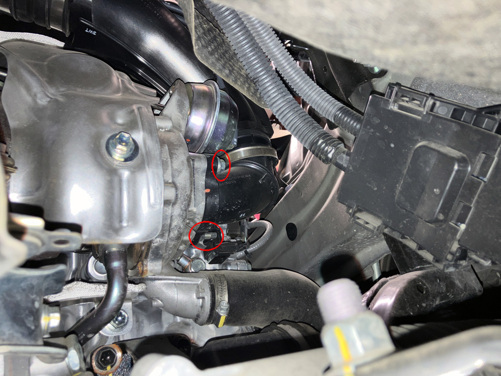 4. Remove (1) bolt from the OE turbo inlet to a bracket near the valve cover breather hose connection.