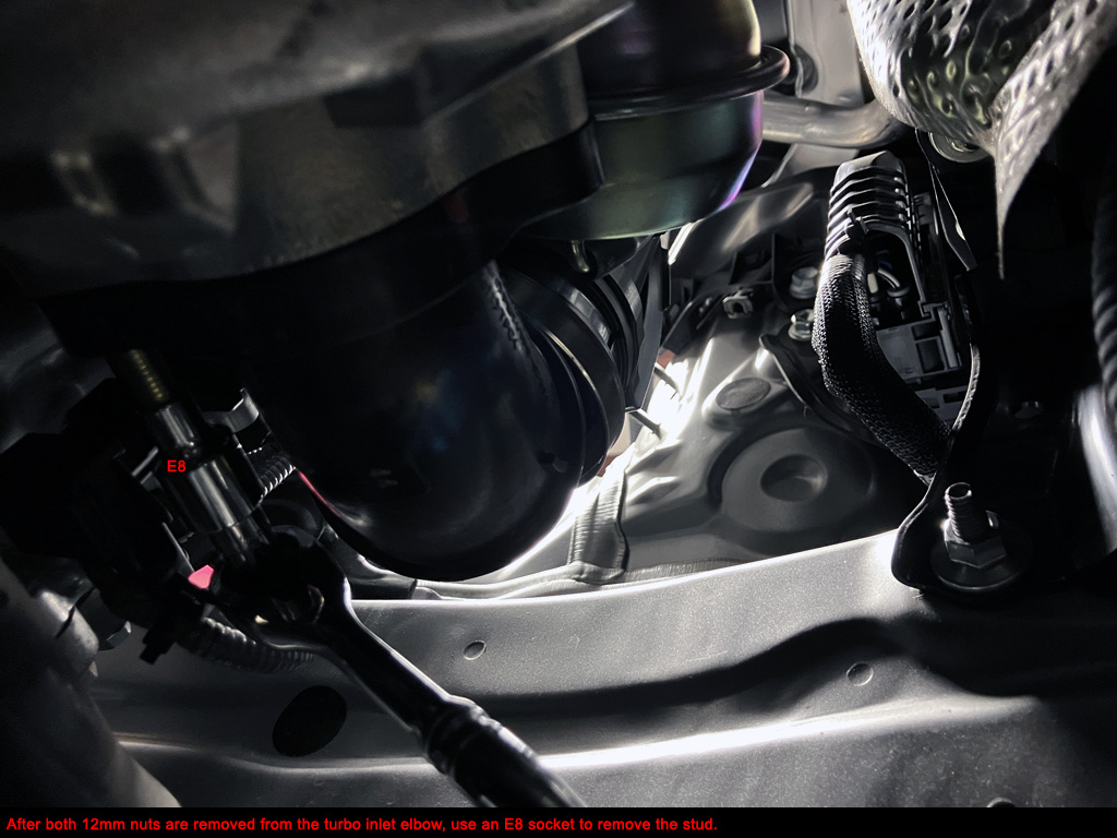 5. Remove OE turbo inlet piping behind engine under the wiper cowl. No room to remove it from below the engine.
