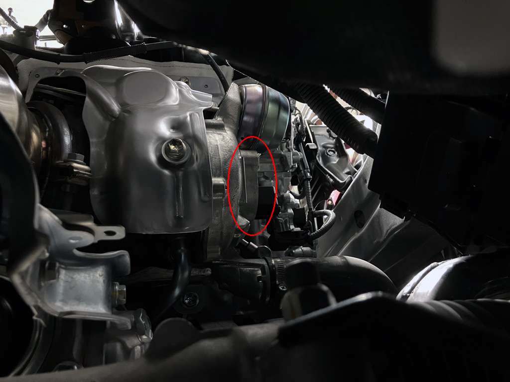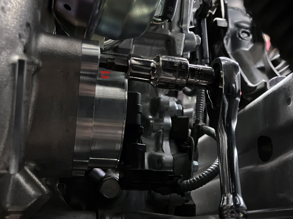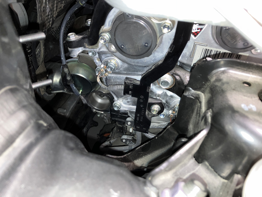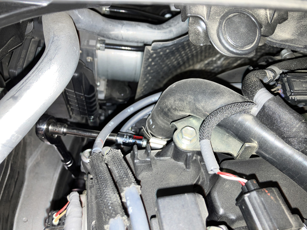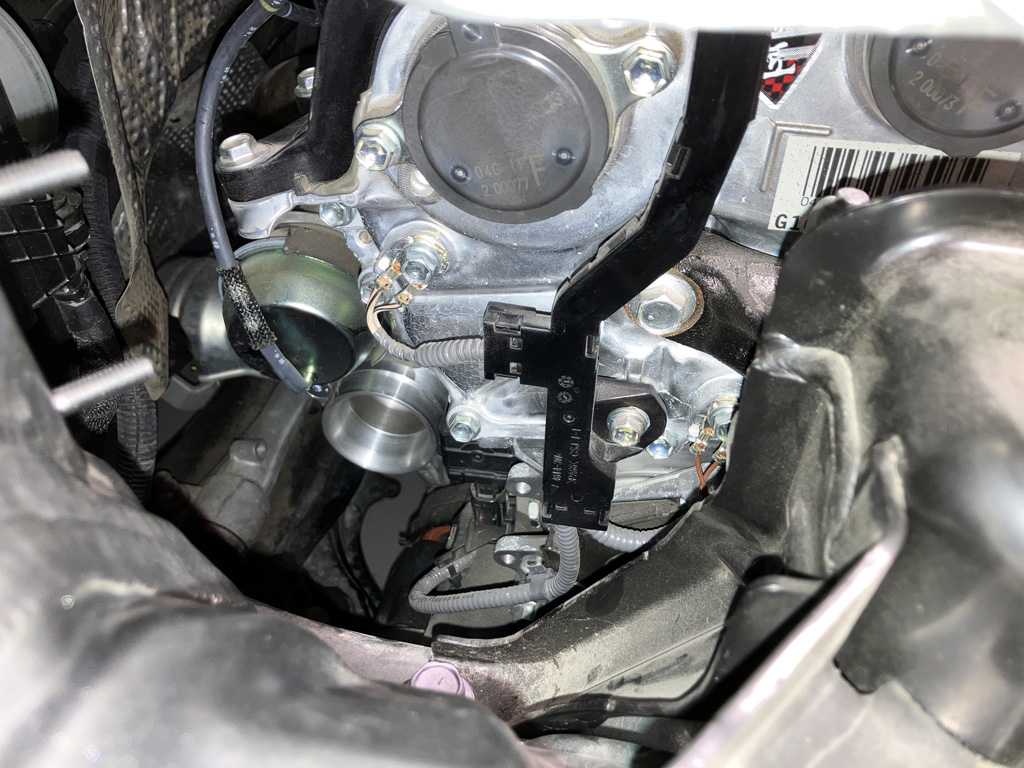 1. Temporarily disconnect mass air sensor wiring plug. I did cut a ziptie and temporarily remove my Flex Fuel Sensor wiring harness under the Eventuri scoop. I put it back later.