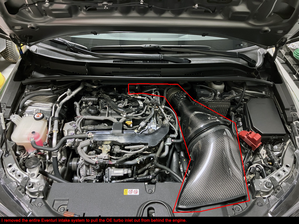 3. Remove OE intake box and piping behind engine under the wiper cowl. Or in my case, remove complete Eventuri intake.