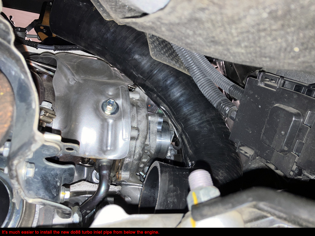 2. Install do88 turbo inlet silicone hose from below the engine.